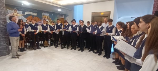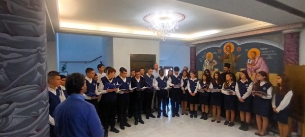 Ακολούθως, έψαλε επίκαιρους εκκλησιαστικούς ύμνους και κάλαντα η πολυμελής χορωδία και ορχήστρα μαθητών της Ριζαρείου Εκκλησιαστικής Σχολής Αθηνών υπό τον Χοράρχη και Καθηγητή κ. Γεώργιο Ζήσιμο, συνοδευόμενη υπό των Καθηγητών της Σχολής, Αιδεσιμολ. Πρωτοπρεσβυτέρου π. Σταμάτιου Σταματόπουλου, κ. Κοσμά Αδαμίδη, κ. Θεοδώρας Πυττερού και κ. Γεωργίου Φωκά.