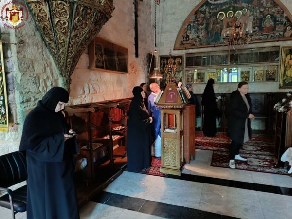 Της θείας Λειτουργίας εν αγρυπνία προεξήρξεν ο Σεβασμιώτατος Αρχιεπίσκοπος Μαδάβων κ. Αριστόβουλος, ψάλλοντος του Ιεροδιακόνου π. Συμεών, τη συμμετοχή των Αγιοσαββιτών Πατέρων διά του Πνευματικού αυτών Αρχιμανδρίτου π. Ευδοκίμου και Αραβοφώνων Ορθοδόξων πιστών εκ των περιχώρων της Βηθλεέμ.