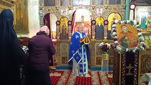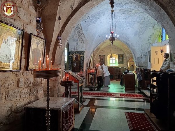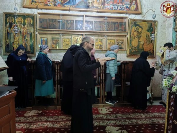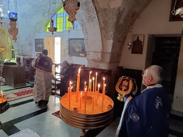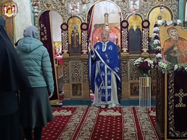 Της θείας Λειτουργίας εν αγρυπνία προεξήρξεν ο Σεβασμιώτατος Αρχιεπίσκοπος Μαδάβων κ. Αριστόβουλος, ψάλλοντος του Ιεροδιακόνου π. Συμεών, τη συμμετοχή των Αγιοσαββιτών Πατέρων διά του Πνευματικού αυτών Αρχιμανδρίτου π. Ευδοκίμου και Αραβοφώνων Ορθοδόξων πιστών εκ των περιχώρων της Βηθλεέμ.