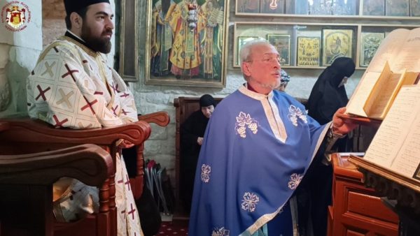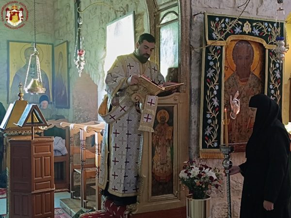 Την θεία Λειτουργία επιτέλεσε ο Αρχιμανδρίτης π. Κλαύδιος, συλλειτουργούντος του Ιεροδιακόνου π. Ευλογίου, τη συμμετοχή μοναχών, μοναζουσών και τη προετοιμασία του ηγουμένου Αρχιδιακόνου π. Μάρκου.