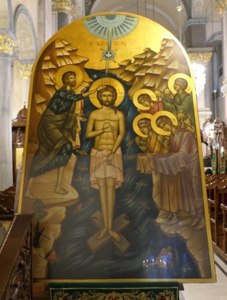 Ο Θεοφιλέστατος Επίσκοπος Αμαθούντος κ. Νικόλαος τέλεσε την Θεία Λειτουργία και τον Μέγα Αγιασμό στον ιερό ναό Αγίων Θεοπατόρων Ιωακείμ και Άννης. Μετά το τέλος της Θείας Λειτουργίας κατευθήνθηκαν εν πομπή στην αποβάθρα μπροστά από το ξενοδοχείο “Four Seasons” όπου έγινε και ο Αγιασμός των υδάτων.
