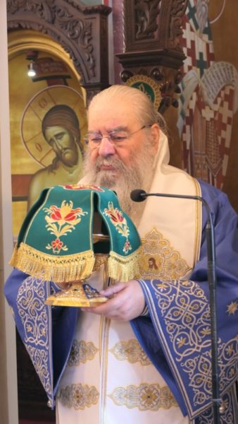 Στο τέλος της Θείας λειτουργίας, στο μέσω του ναού, τέλεσε την Ακολουθία του Μεγάλου Αγιασμού, παρουσία του Υπουργού Δικαιοσύνης κ. Μάριου Χαρτσιώτη, του Δημάρχου Λεμεσού κ. Γιάννη Αρμεύτη και άλλων κρατικών και τοπικών αξιωματούχων.