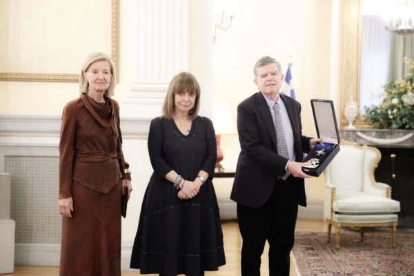Η Πρόεδρος της Δημοκρατίας Κατερίνα Σακελλαροπούλου, σε τελετή που πραγματοποιήθηκε στο Προεδρικό Μέγαρο, απένειμε το παράσημο του Μεγαλόσταυρου του Τάγματος της Τιμής στον εφοπλιστή Αθανάσιο Μαρτίνο.