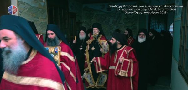Υποδοχή του Μητροπολίτου Κυδωνίας και Αποκορώνου Δαμασκηνού στην Ι.Μ.Μ. Βατοπαιδίου (BINTEO)