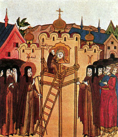 Ο ναός της Κοιμήσεως της Θεοτόκου στο Βλαντίμιρ θεωρούταν καθεδρικός ναός της Ρωσικής Εκκλησίας, και η αγιογράφησή του ήταν έργο μεγάλης ευθύνης. Ο ναός ανεγέρθη τον 12ο αιώνα, αλλά οι αγιογραφίες του καταστράφηκαν το 1238, κατά την ταταρο-μογγολική εισβολή. Με την παραγγελία του Μεγάλου Πρίγκιπα Βασίλι Ντμίτριεβιτς ο ναός εικονογραφήθηκε ξανά.