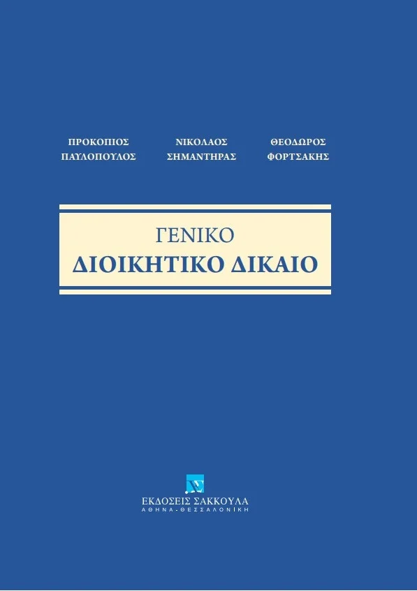 Βρίσκεται ήδη στο τυπογραφείο και θα κυκλοφορήσει (από τις εκδόσεις Σάκκουλα, Αθήνα-Θεσσαλονίκη), στο τέλος του επόμενου δεκαπενθημέρου, το νέο «Γενικό Διοικητικό Δίκαιο» που συνέγραψε ο τέως Πρόεδρος της Δημοκρατίας και Ακαδημαϊκός κ. Προκόπης Παυλόπουλος, με την συμβολή των συναδέλφων του στη Νομική Σχολή του ΕΚΠΑ Νικολάου Σημαντήρα και Θεόδωρου Φορτσάκη.