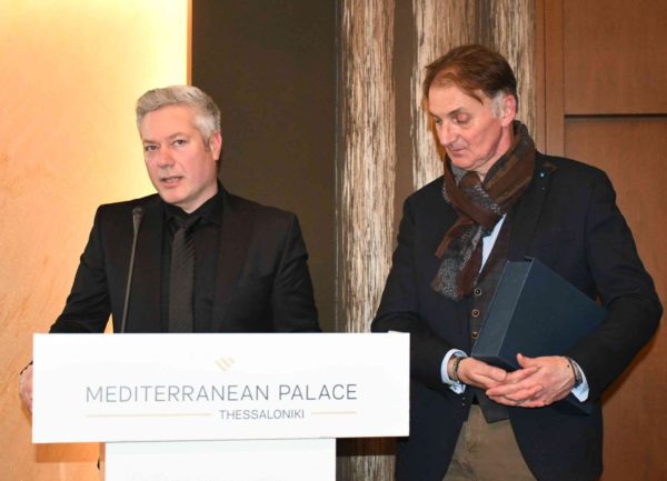 Η τιμητική διάκριση απονεμήθηκε στον Διευθυντή της Αγιορειτικής Εστίας κ. Αναστάσιο Ντούρο από τον Σεβασμιώτατο Μητροπολίτη Νεαπόλεως και Σταυρουπόλεως κ. Βαρνάβα, παρόντος του Πρόεδρου της Περιφερειακής Ένωσης Δήμων Κεντρικής Μακεδονίας (ΠΕΔΚΜ), κ. Ιγνάτιου Καϊτεζίδη καθώς και του Αντιπροέδρου του Δ.Σ. της Αγιορειτικής Εστίας κ. Βασιλείου Γάκης, ο οποίος ως Γενικός Γραμματέας της ΠΕΔΚΜ συντόνιζε την εκδήλωση και αναφέρθηκε στο ιστορικό ίδρυσης, στις δράσεις και στο σπουδαίο έργο της Αγιορειτικής Εστίας η οποία «συνεχίζει επάξια τις μακραίωνες σχέσεις μεταξύ της Θεσσαλονίκης και του Αγίου Όρους» όπως χαρακτηριστικά ανέφερε ο κ. Γάκης.