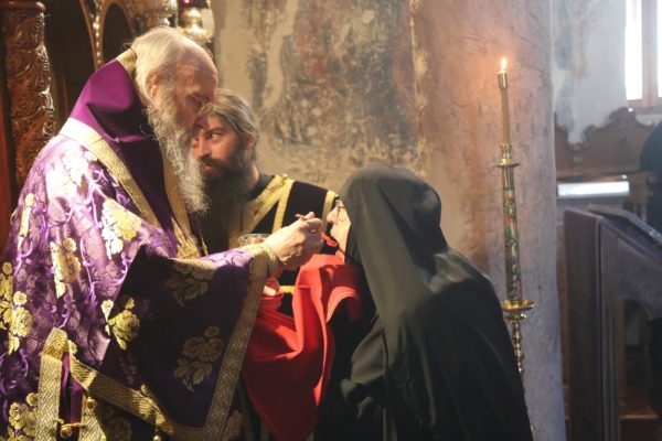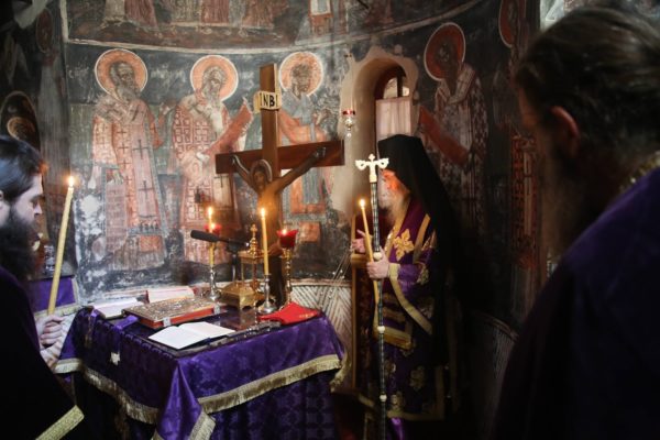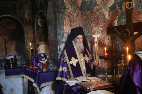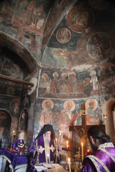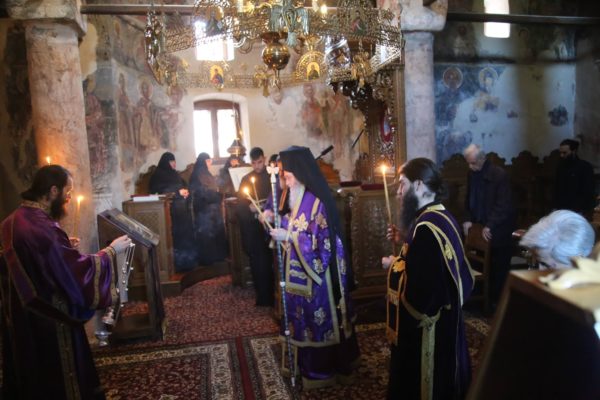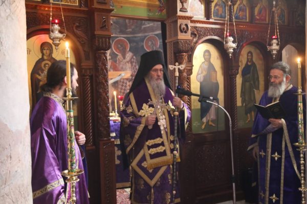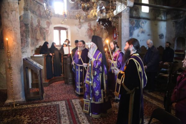 Την πρώτη Θεία Λειτουργία των Προηγιασμένων Τιμίων Δώρων της Μεγάλης Τεσσαρακοστής τέλεσε σήμερα, Τετάρτη 5 Μαρτίου, ο Σεβασμιώτατος Μητροπολίτης Ναυπάκτου και Αγίου Βλασίου κ. Ιερόθεος, στο ανακαινισμένο κατανυκτικό Καθολικό της Ιεράς Μονής του Τιμίου Προδρόμου στην Βομβοκού Ναυπακτίας.