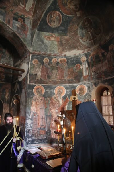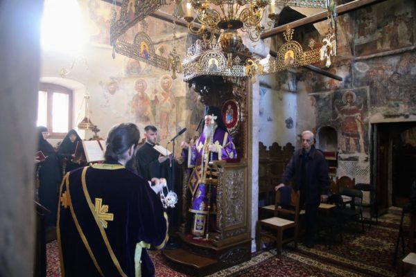 Με τον Σεβασμιώτατο συλλειτούργησαν ο Εφημέριος της Ιεράς Μονής π. Γεώργιος Γεωργάτος και οι Διάκονοι π. Παντελεήμων Δόνες και π. Παΐσιος Παρασκευάς.