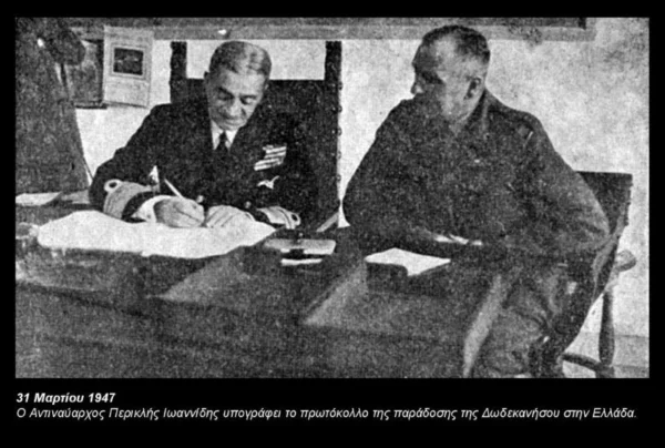 Είχε προηγηθεί η παράδοση των Δωδεκανήσων στην Ελλάδα από τις βρετανικές αρχές, στη Ρόδο, σε πανηγυρική ατμόσφαιρα, στις 31 Μαρτίου του 1947. Πρώτος διοικητής των Δωδεκανήσων είχε αναλάβει ο αντιναύαρχος Περικλής Ιωαννίδης.