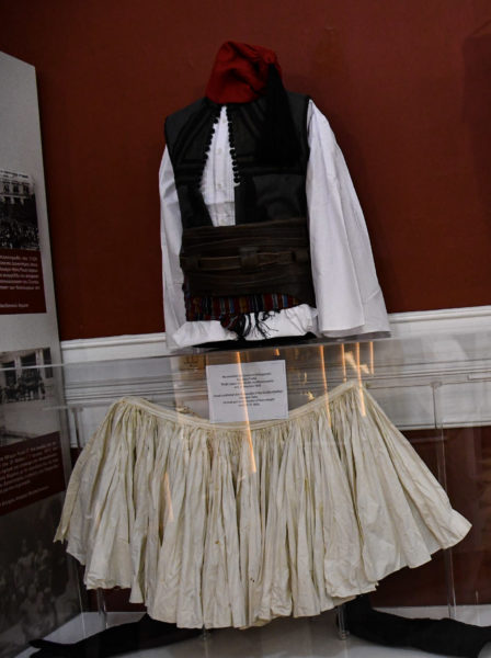Μεταξύ των εκθεμάτων διακρίνεται μια αυθεντική φουστανέλα του Σουλιώτη οπλαρχηγού Γιωργάκη Τσέλη που την παρέδωσε η οικογένεια του Αγωνιστή, καθώς και αντίγραφα στολών των Αγωνιστών του 1821.