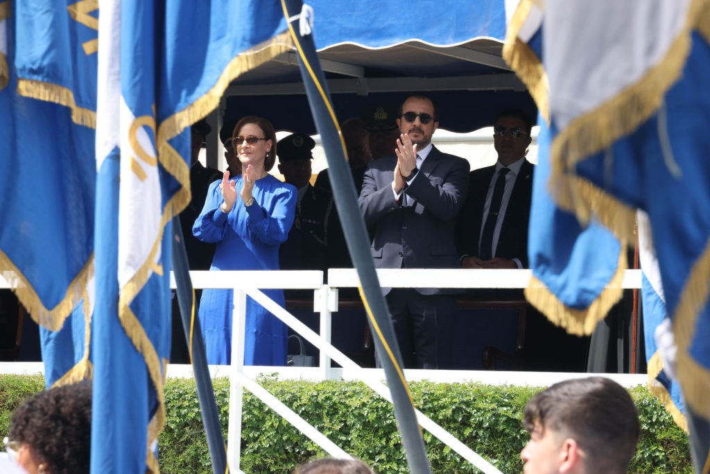 Τον χαιρετισμό της παρέλασης, μπροστά από το οίκημα της ελληνικής Πρεσβείας, δέχθηκε ο Πρόεδρος της Δημοκρατίας, Νίκος Χριστοδουλίδης, συνοδευόμενος από την Πρώτη Κυρία, Φιλίππα Καρσερά-Χριστοδουλίδη. Παρόντες ήταν και ο Αρχιεπίσκοπος Κύπρου κ.κ. Γεώργιος, η Πρόεδρος της Βουλής των Αντιπροσώπων, Αννίτα Δημητρίου, ο Πρέσβης της Ελλάδος στην Κύπρο, Ιωάννης Παπαμελετίου, Υπουργοί, αρχηγοί ή εκπρόσωποι κομμάτων και άλλοι αξιωματούχοι.