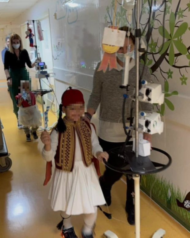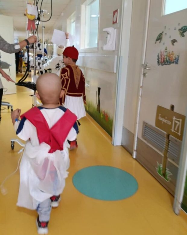 Τα παιδία μεταμφιέστηκαν σε τσολιάδες, φόρεσαν παραδοσιακές στολές, κράτησαν σημαίες και με λάβαρο την ελπίδα δίνουν μαζί με τους ανθρώπους τους και το ιατρικό προσωπικό τον δικό τους αγώνα.