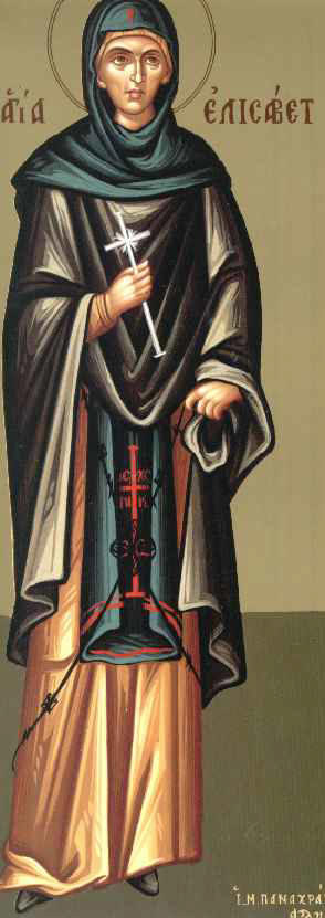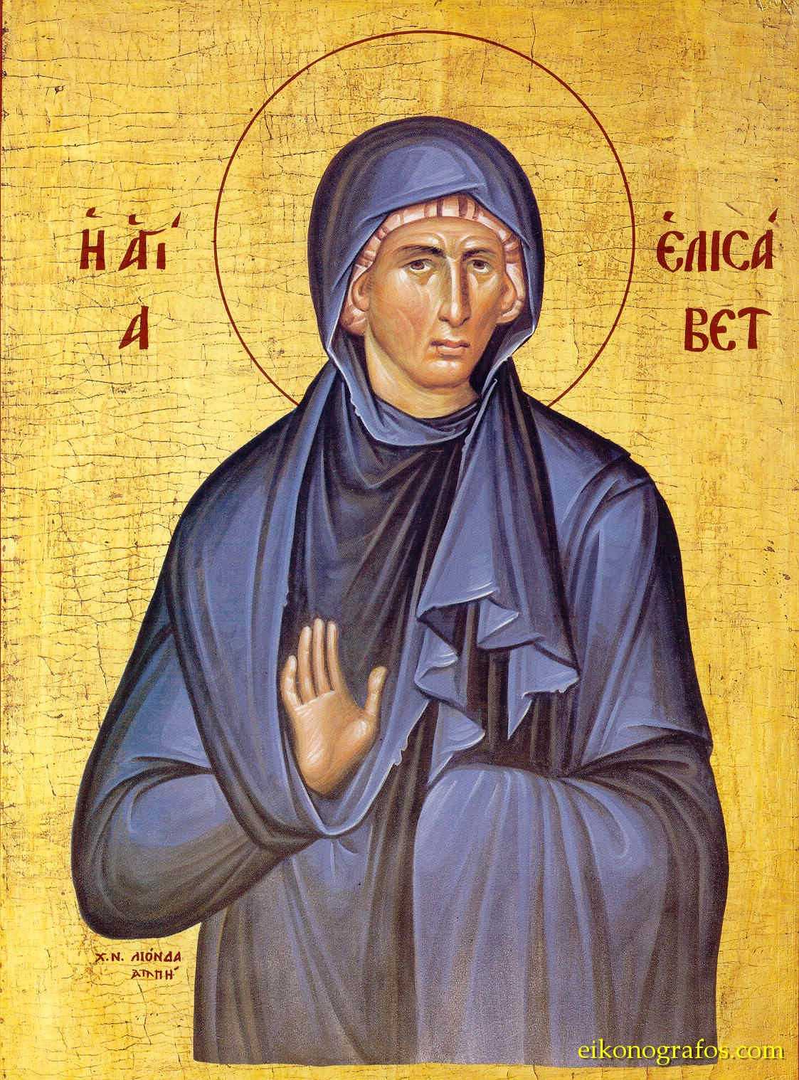 Εν σοι Μήτερ, ακριβώς διεσώθη το κατ’ εικόνα. λαβούσα γαρ τον Σταυρόν, ηκολούθησας τω Χριστώ, καί πράττουσα εδίδασκες, υπεροράν μεν σαρκός, παρέρχεται γάρ. επιμελείσθαι δε ψυχής, πράγματος αθανάτου. διό και μετά Αγγέλων συναγάλλεται, οσία Ελισάβετ, τό πνεύμα σου.