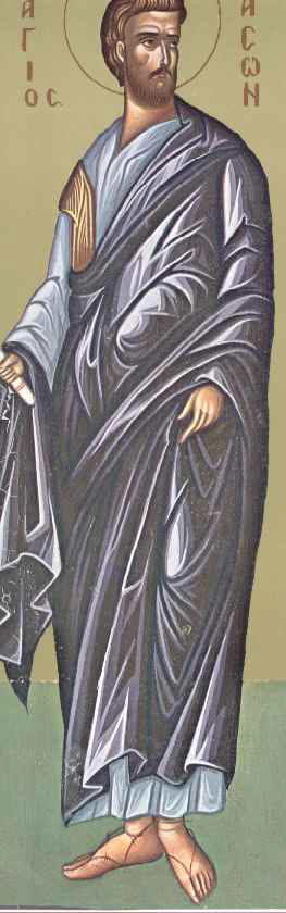 Ο Απόστολος Παύλος, μετά τους Φιλίππους, ήλθε στην Θεσσαλονίκη, όπου δίδαξε επί τρεις εβδομάδες. Η διδασκαλία του επέσυρε το μίσος των Ιουδαίων, οι οποίοι στράφηκαν εναντίον του, παρακινώντας και τους αγοραίους της πόλεως. Επειδή φιλοξενούνταν στο σπίτι του Ιάσονος, οι Ιουδαίοι τον αναζήτησαν εκεί. Δεν τον βρήκαν όμως, γι’ αυτό έσυραν τον Ιάσονα και τους άλλους αδελφούς στους πολιτάρχες, δηλαδή στους δημοτικούς άρχοντες. Στην αφήγηση αυτή των Πράξεων των Αποστόλων αναφέρεται για πρώτη φορά το όνομα του Ιάσονα. Στην προς Ρωμαίους Επιστολή ο Παύλος αναφέρει τον Ιάσονα με εκείνους που απηύθυναν χαιρετισμούς στους παραλήπτες της Επιστολής.
