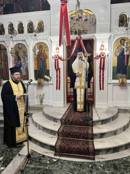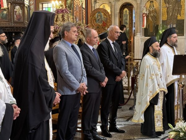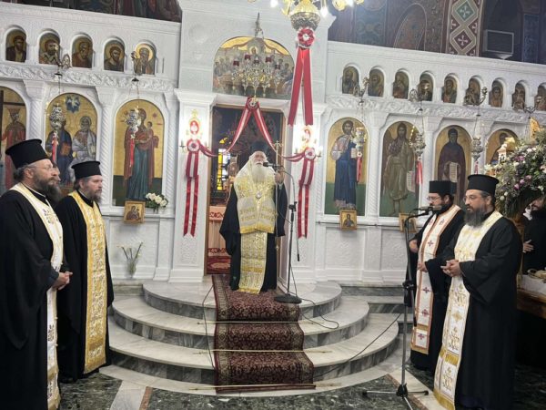 Προέστη ο Σεβ. Μητροπολίτης Λαοδικείας κ. Θεοδώρητος, εκπρόσωπος της Α.Θ.Π. του Οικουμενικού Πατριάρχου κ.κ. Βαρθολομαίου, και συμμετείχαν οι Σεβασμιώτατοι Μητροπολίτες Πειραιώς κ. Σεραφείμ, Σύρου κ. Δωρόθεος, Μεσογαίας κ. Νικόλαος, Πατρών κ. Χρυσόστομος, Γλυφάδας κ. Αντώνιος, Θαυμακού κ. Ιάκωβος, Θεσσαλιώτιδος κ. Τιμόθεος, Τρίκκης κ. Χρυσόστομος, Γρεβενών κ. Δαβίδ, Σταγών κ. Θεόκλητος, Καρπενησίου κ. Γεώργιος, Μάνης κ. Χρυσόστομος, Αιτωλίας κ. Δαμασκηνός, Παραμυθίας κ. Σεραπίων, και ο Θεοφιλέστατος Επίσκοπος Αχελώου κ. Νήφων. Συμπροσευχόμενος παρέστη στο Ιερό Βήμα ο Σεβ. Μητροπολίτης Κρήνης κ. Κύριλλος.