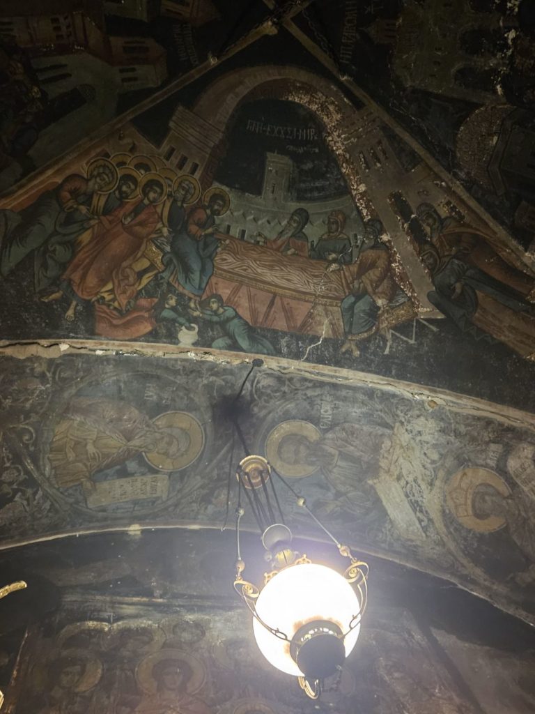 Σημειώνεται ότι από την πτώση μικρού μεταλλικού πολυελαίου, στον κυρίως ναό, προκλήθηκαν μικρής κλίμακας φθορές στο μαρμαροθετημένο δάπεδο, του 11ου αιώνα.