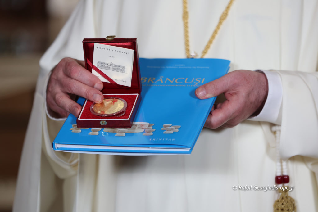 Σε ένδειξη αυτής της προσφοράς και με αφορμή την ευλογημένη έλευση της Τιμίας Κάρας του Ιερού Χρυσοστόμου από το Άγιον Όρος, ο Μακαριώτατος τίμησε τον Γέροντα Εφραίμ με την Ανώτατη Τιμή του Πατριαρχείου Ρουμανίας, προσφέροντάς του επιστήθιο Πατριαρχικό σταυρό.