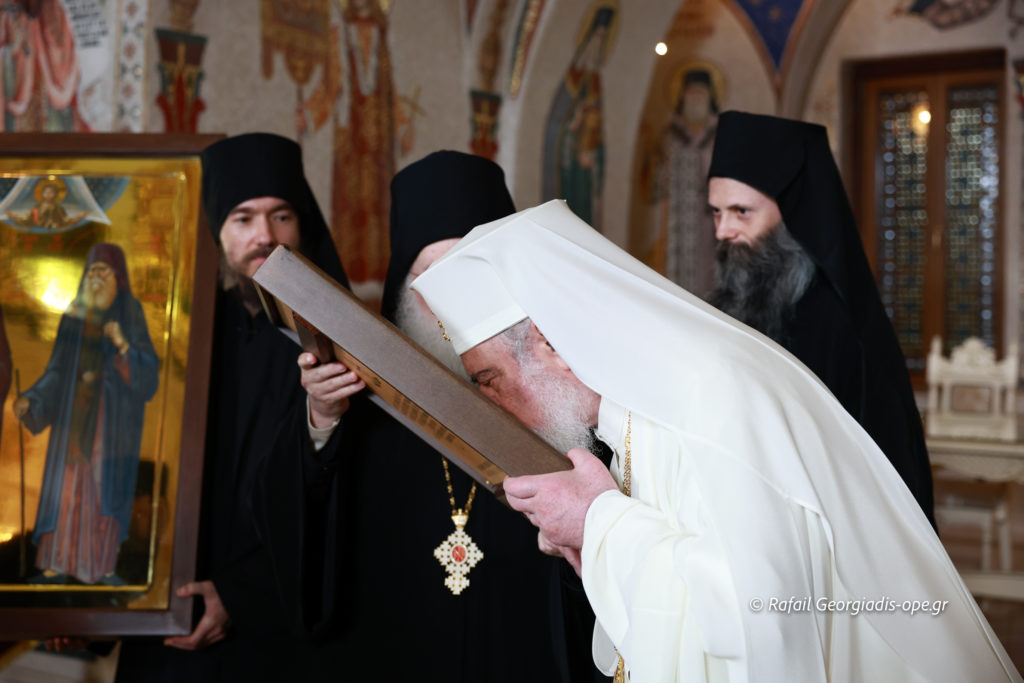 Από την πλευρά του ο Γέρων Εφραίμ ευχαρίστησε τον Πατριάρχη κ.κ. Δανιήλ για τη υποδοχή και την τιμή και του δώρισε δύο φορητές εικόνες από το αγιογραφείο της Μονής.