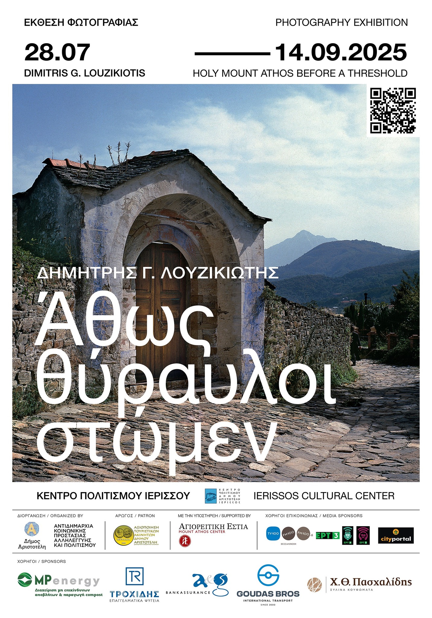 Εγκαινιάζεται την Δευτέρα 28 Ιουλίου 2025 στο Κέντρο Πολιτισμού Ιερισσού η έκθεση φωτογραφίας του Δημήτρη Γ. Λουζικιώτη με τίτλο «Άθως Θύραυλοι Στώμεν».