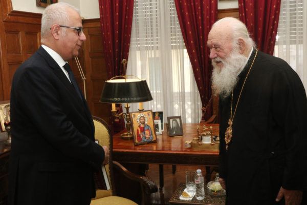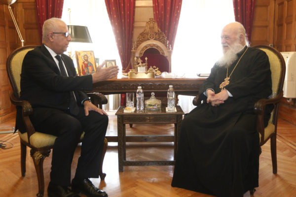 Ακολούθως, ο Μακαριώτατος συναντήθηκε με τον Πρέσβη του Λιβάνου στην Ελλάδα, κ. Kenj El Hajal. Τον κ. Πρέσβη καλωσόρισε αρχικά ο Πρωτοσύγκελλος της Ιεράς Αρχιεπισκοπής Αθηνών, Επίσκοπος Χριστουπόλεως κ. Βαρνάβας.