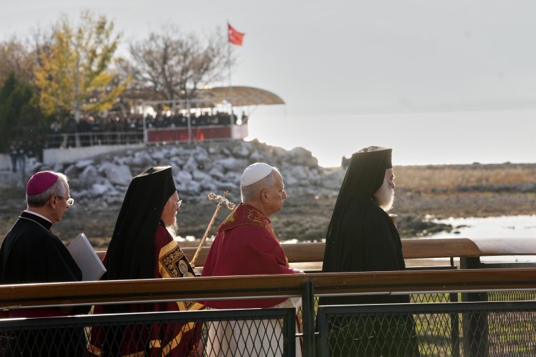 Πραγματοποιήθηκε στη Νίκαια της Βιθυνίας, σε ειδικά διαμορφωμένο χώρο, στην Βασιλική του Αγίου Νεοφύτου, η συνάντηση του Παναγιωτάτου Οικουμενικού Πατριάρχη κ.κ. Βαρθολομαίου και του Πάπα Ρώμης Λέοντα ΙΔ’, για τα 1700 χρόνια από τη σύγκληση της Α’ Οικουμενικής Συνόδου.