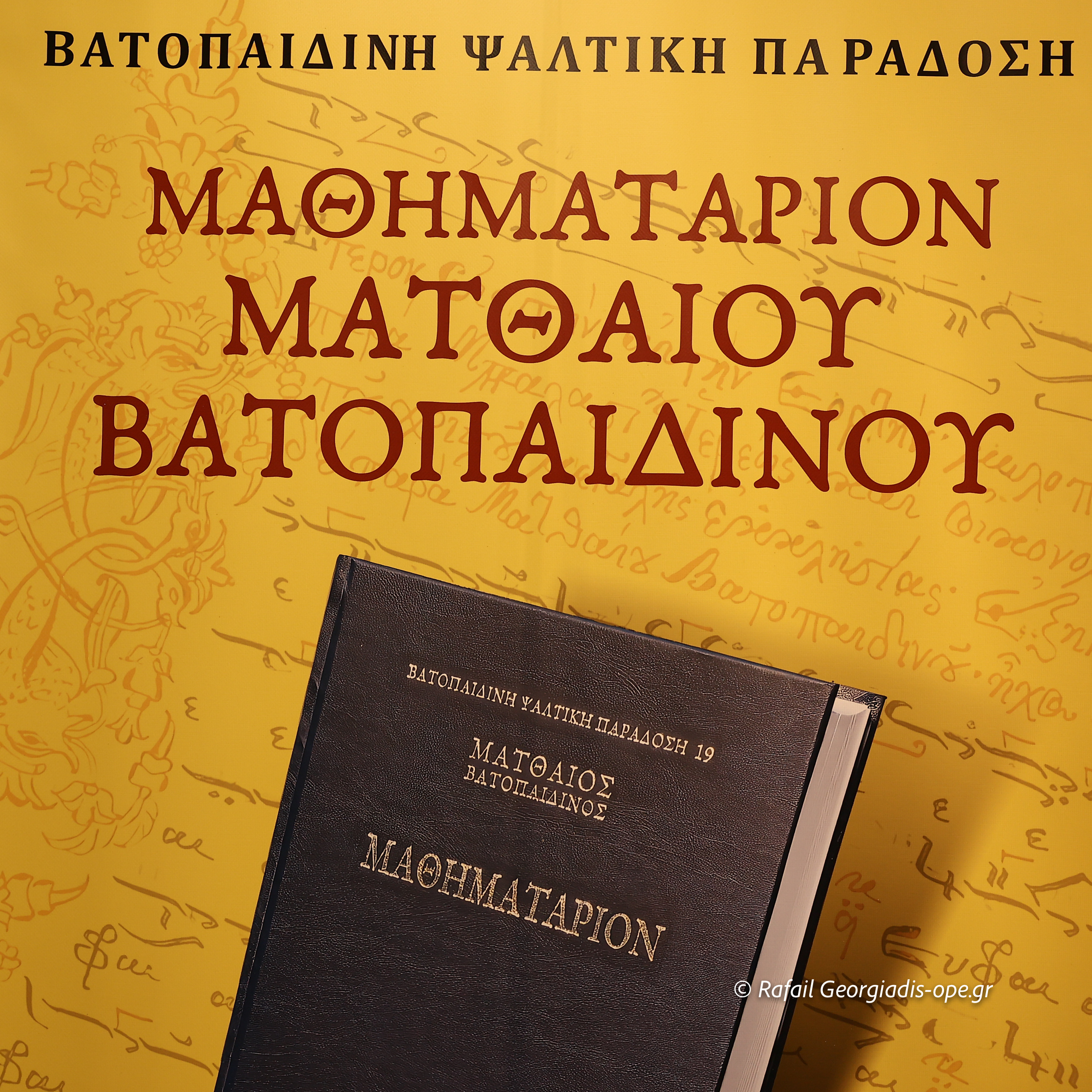 Στη συνέχεια, ο δρ. Γεώργιος Κωνσταντίνου, από το Τμήμα Μουσικών Σπουδών του Ιονίου Πανεπιστημίου, παρουσίασε την έκδοση, αναδεικνύοντας την ιστορική, μουσικολογική και παιδαγωγική αξία του “Μαθηματαρίου”. Τόνισε πως ο Ματθαίος Βατοπαιδινός υπήρξε μία από τις σημαντικότερες μορφές της Βατοπαιδινής και γενικότερα της αγιορείτικης μουσικής παράδοσης, με πλούσιο συγγραφικό και κωδικογραφικό έργο. Αναφέρθηκε επίσης στους 58 σωζόμενους κώδικες του, εκ των οποίων οι 28 φυλάσσονται στη Μονή Βατοπαιδίου.