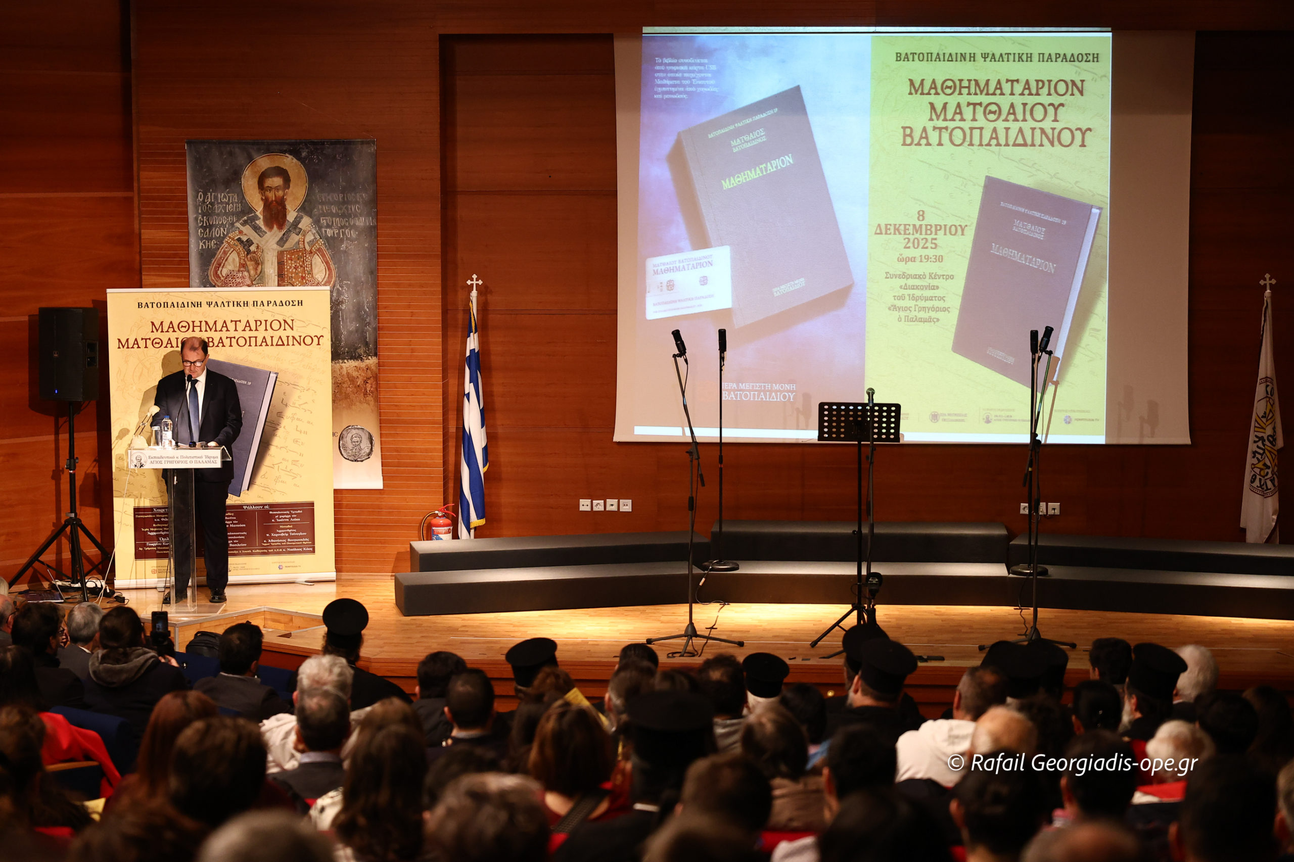 Σε μια ιδιαίτερα ζεστή και κατανυκτική ατμόσφαιρα πραγματοποιήθηκε το απόγευμα της Δευτέρας, 8 Δεκεμβρίου 2025, στο Συνεδριακό Κέντρο «Διακονία» του Ιδρύματος «Άγιος Γρηγόριος ο Παλαμάς» στη Θεσσαλονίκη, η παρουσίαση του “Μαθηματαρίου” του Μοναχού Ματθαίου του Βατοπαιδινού (1774–1849). Την εκδήλωση συνδιοργάνωσαν η Ιερά Μεγίστη Μονή Βατοπαιδίου και η Ιερά Μητρόπολη Θεσσαλονίκης.