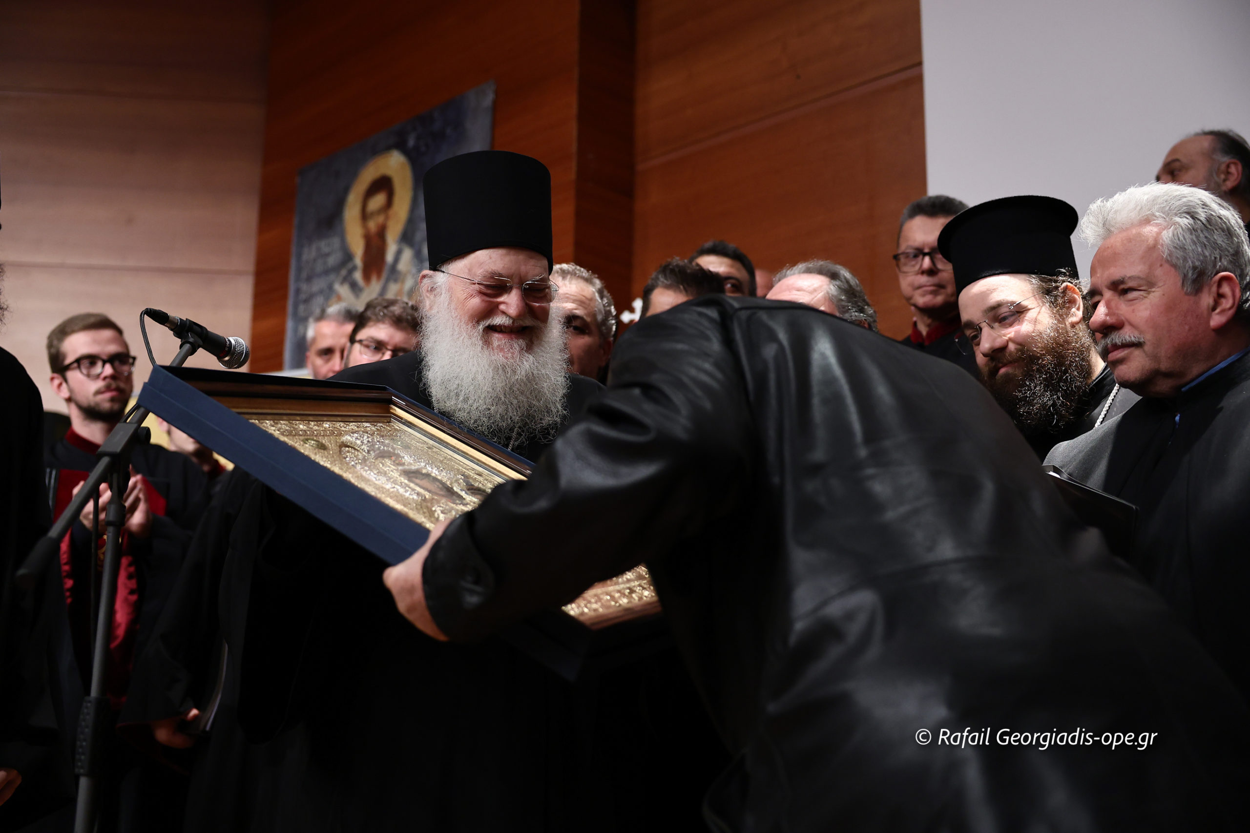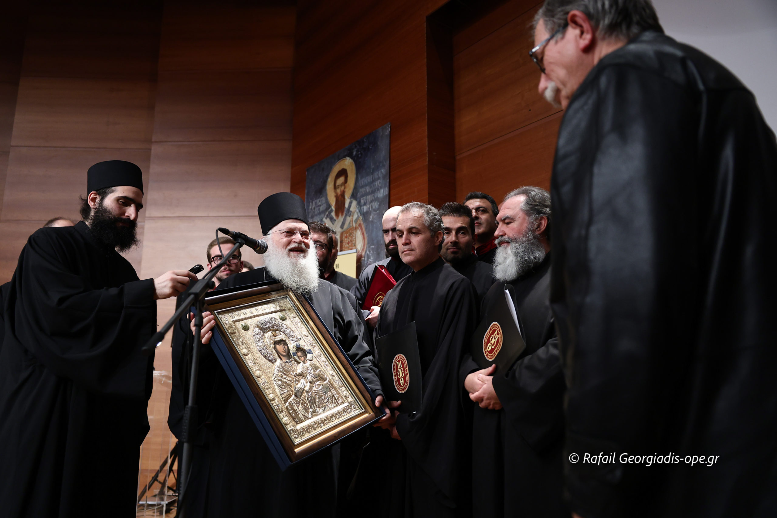 Πριν την λήξη της εκδήλωσης ο Καθηγούμενος της Ι. Μ. Μ. Βατοπαιδίου Γέροντας Εφραίμ προσέφερε από μια εικόνα της Παναγίας της Βημαραρίσσης στον κ. Αθανάσιο Βουγιουκλή, Άρχων Μαΐστωρ του Πατριαρχικού Θρόνου και στον Πρωτοψάλτη Ιωάννη Χασανίδη για την πολυετή τους προσφορά στα αναλογία της Εκκλησίας.