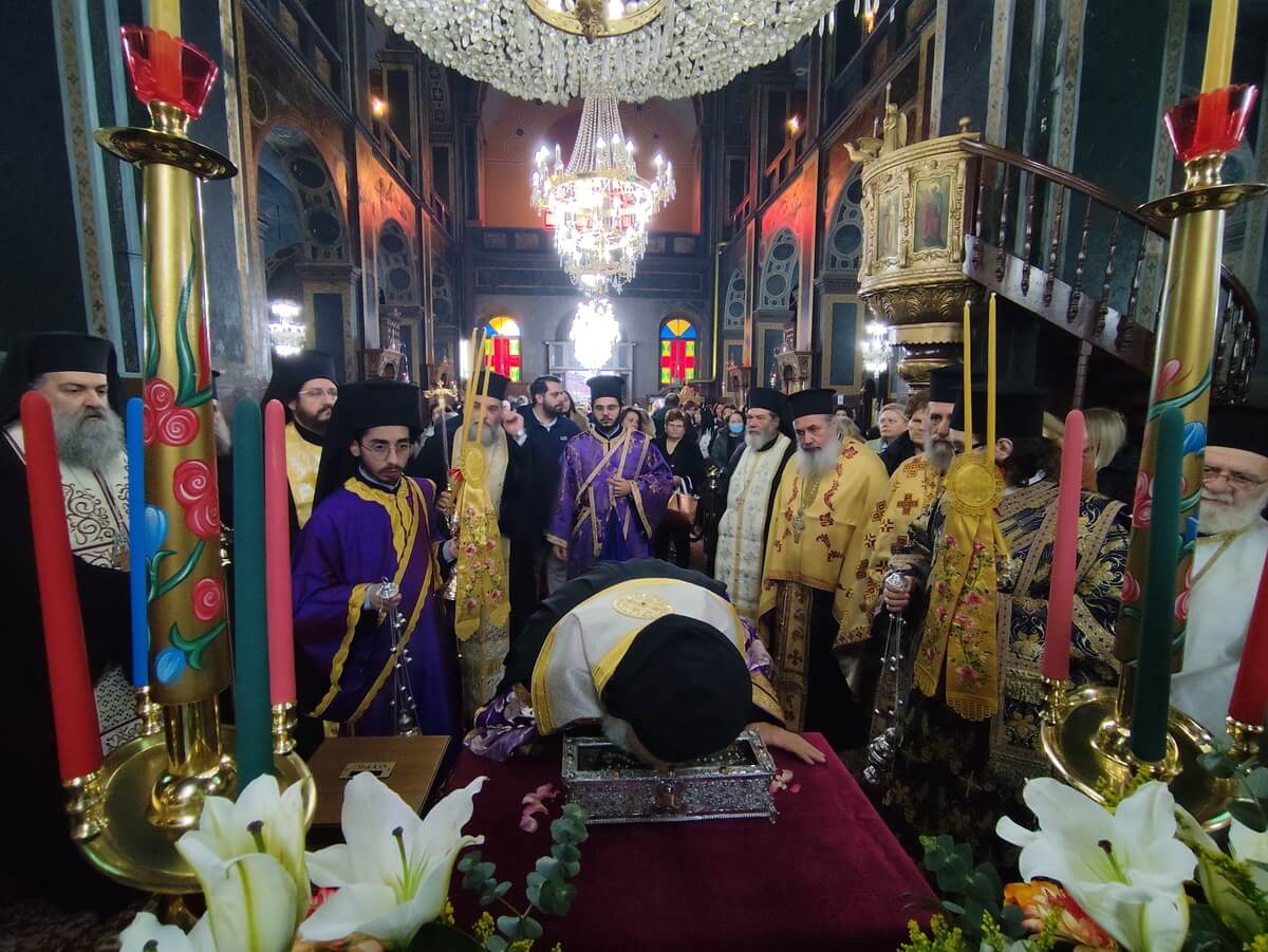 Ο Ιερός Μητροπολιτικός Ναός θα παραμείνει ανοιχτός από τις 7:00 το πρωί έως το τέλος των βραδινών Ακολουθιών, δίνοντας τη δυνατότητα στους ευσεβείς χριστιανούς να προσέλθουν και να προσκυνήσουν το ιερό Λείψανο.