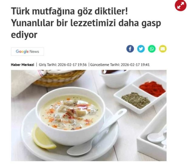 Η ιστοσελίδα Haberler δημοσίευσε άρθρο με τίτλο «Η Ελλάδα λαμβάνει μέτρα σχετικά με τη σούπα από πατσά», κάνοντας λόγο για «νέο κεφάλαιο» στη μακροχρόνια γαστρονομική αντιπαλότητα μεταξύ των δύο χωρών και υποστηρίζοντας ότι «η Αθήνα έχει βάλει στο στόχαστρο τη σούπα από πατσά».