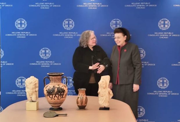 Η υπουργός Πολιτισμού Λίνα Μενδώνη παρέλαβε, σε ειδική τελετή, στο Γενικό Προξενείο της Ελλάδας, στο Σικάγο, πέντε αρχαιότητες, που επαναπατρίζονται από τις Ηνωμένες Πολιτείες.