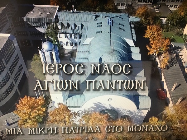 Ιστορία του ιερού Ναού Αγίων Πάντων Μονάχου σε ταινία -ντοκιμαντέρ 30΄από τον Φώτη Μάραντο, Hellas TV. O καταξιωμένος εικονολήπτης και παραγωγός τηλεοπτικών ταινιών και ιδρυτής της Hellas TV κ. Φώτης Μάραντος ασχολήθηκε με την ιστορία της Ενορίας Αγίων Πάντων Μονάχου και αφιέρωσε ένα ντοκιμαντέρ, με αεροφωτογραφίες του ναού, με πολιτιστικές εκδηλώσεις και με συνεντεύξεις από τον Σεβ. Μητροπολίτη Γερμανίας κ. Αυγουστίνο, τον Πρωτοπρεσβύτερο Απόστολο Μαλαμούση, τον Αρχιμανδρίτη Γεώργιο Σιώμο, τον πρώην Αρχιδήμαρχο Μονάχου, την Πρόεδρο της Βαυαρικής Βουλής, τον Δούκα της Βαυαρίας (μέλος της βασιλικής οικογένειας του Όθωνα της Ελλάδος), τον Καρδινάλιο Μονάχου, τον Ευαγγελικό Επίσκοπο Βαυαρίας και την Πρόεδρο της Εβραϊκής Κοινότητας Μονάχου. Ο Βυζαντινός Χορός Ιεροψαλτών υπό τη διεύθυνση του ελλογιμωτάτου κ. Κωνσταντίνου Νικολακοπούλου και τη συμμετοχή του ελλογιμωτάτου ...