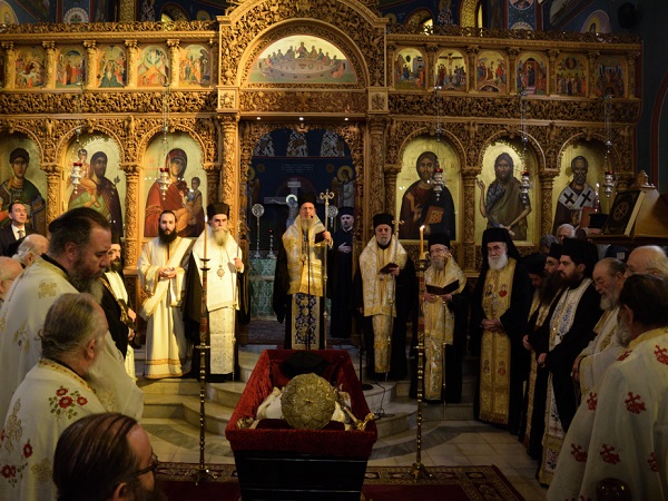 Σε κλίμα συγκίνησης τελέσθηκε την Κυριακή 31 Δεκεμβρίου 2017 η εξόδιος ακολουθία του Μητροπολίτου Ευρίπου κυρού Βασιλείου, στον Πολιούχο Αγρινίου, Ιερό Ναό Αγίου Χριστοφόρου. Το πρωί της Κυριακής τελέσθηκε η Θεία Λειτουργία, ενώπιον του σκηνώματος του μακαριστού Μητροπολίτου, από τον πρωτοσύγκελλο της Ι. Μητροπόλεως αρχιμ. Επιφάνιο Καραγεώργο. Στο νεκρώσιμο τρισάγιο που τελέσθηκε στη συνέχεια, χοροστάτησε ο Επίσκοπος Λεύκης κ. Ευμένιος, πνευματικό τέκνο του αειμνήστου, ο οποίος βαθύτατα συγκινημένος αναφέρθηκε στην προσωπικότητα του γέροντά του. Στην εξόδιο ακολουθία προεξήρχε ο Θεοφιλέστατος Επίσκοπος Θαυμακού κ. Ιάκωβος, ως εκπρόσωπος του Μακαριωτάτου Αρχιεπισκόπου Αθηνών και πάσης Ελλάδος κ. κ. Ιερωνύμου. ενώ συμμετείχαν ο Σεβασμιώτατος Μητροπολίτης Άρτης κ. Καλλίνικος, ο Θεοφιλέστατος Επίσκοπος Λεύκης κ. Ευμένιος και ο Σεβασμιώτατος Μητροπολίτης Αιτωλίας και Ακαρνανίας κ. Κοσμάς. Συμμετείχαν επίσης ο ...