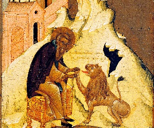 Στη συνέχεια γίνεται αναφορά στη συγκλονιστική ιστορία του Αγ. Γερασίμου του Ιορδανίτη και του λιονταριού (του Ιορδάνη, όπως το ονόμασε ο Άγιος). Είναι μία από τις πολλές ιστορίες Αγίων της ορθοδόξου εκκλησίας η οποία με πολύ απλό και παραστατικό τρόπο μας μιλά για τη σχέση του αγιασμένου ανθρώπου με την άγρια φύση, αναφορικά με ένα λιοντάρι. Ο Αγ. Γεράσιμος ο Ιορδανίτης συνάντησε ένα λιοντάρι κοντά στην όχθη του Ιορδάνη, που πονούσε πολύ στο πόδι, επειδή είχε μπει μέσα του αγκίδα από καλάμι και εξαιτίας αυτού είχε πρηστεί. Ο Άγιος θεράπευσε το λιοντάρι και αυτό, από ευγνωμοσύνη, έμεινε κοντά του, σαν γνήσιος υποτακτικός. Το ονόμασαν μάλιστα Ιορδάνη. Οι πατέρες της μονής συνήθιζαν να δίνουν στο λιοντάρι το γαϊδούρι της μονής, για να ...