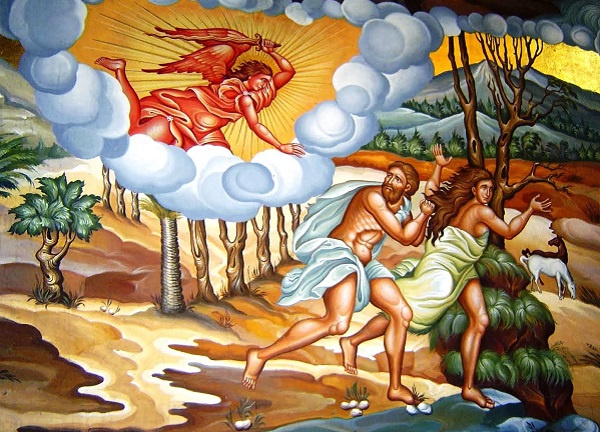 Και στη γυναίκα είπε ο Θεός: «Πληθύνων πληθυνώ τας λύπας σου και τον στεναγμόν σου· εν λύπαις τέξη τέκνα και προς τον άνδρα σου η αποστροφή σου και αυτός σου κυριεύσει»(Γεν. γ΄, 16). Επειδή διάλεξες, λέγει, αντί της χαράς τη λύπη και τους στεναγμούς και αντί της ισοτιμίας με τον άνδρα τη διακυβέρνηση απ’ αυτόν και τον εξουσιασμό απ' αυτόν να είσαι καταδικασμένη να ζεις κάτω από αυτές τις συνθήκες. Και στον Αδάμ είπε: «Ότι ήκουσας της φωνής της γυναικός σου και έφαγες από του ξύλου, ου ενετειλάμην σοι τούτου μόνου μη φαγείν, απ' αυτού έφαγες, επικατάρατος η γη εν τοις έργοις σου· εν λύπαις φαγή αυτήν πάσας τας ημέρας της ζωής σου· ακάνθας και τριβόλους ανατελεί σοι, και φαγή τον ...