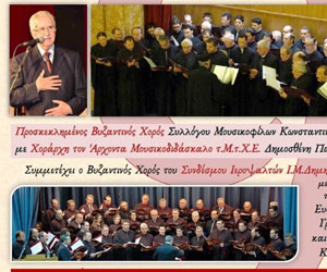 Το 9ο Φεστιβάλ Βυζαντινών Χορωδιών της Ιεράς Μητροπόλεως Δημητριάδος θα πραγματοποιηθεί την Κυριακή 26/11, στις 6μ.μ. στο Πν. Κέντρο της Ιεράς Μητροπόλεως (Κ. Καρτάλη – Ανθ. Γαζή). Προσκεκλημένος θα είναι ο Βυζαντινός Χορός του Συλλόγου Μουσικοφίλων Κωνσταντινουπόλεως, με χοράρχη τον Άρχοντα Μουσικοδιδάσκαλο της Μ.τ.Χ.Ε. Δημοσθένη Παϊκόπουλο. Στον κ. Παϊκόπουλο ο Σεβ. Μητροπολίτης Δημητριάδος κ. Ιγνάτιος θα απονείμει την Ανώτατη Τιμητική Διάκριση της Ιεράς Μητροπόλεως Δημητριάδος, τον Χρυσό Σταυρό, μετά Διπλώματος, για την μεγίστη προσφορά του στην διάσωση και καλλιέργεια της μεγάλης Βυζαντινής Μουσικής μας Παράδοσης. Στο φεστιβάλ θα συμμετάσχει, επίσης, η Χορωδία του Συνδέσμου Ιεροψαλτών Βόλου «Όσιος Ιωάννης ο Κουκουζέλης», υπό την δ/νση των κ.κ. Ευσταθίου Γραμμένου, Πρωτοψάλτου του Μητροπολιτικού Ιερού Ναού Αγίου Νικολάου Βόλου και Προέδρου του Συνδέσμου και Δημητρίου Κατσικλή, Πρωτοψάλτου του Ιερού Ναού Αναλήψεως του ...