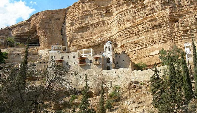 Οδοιπορικό του Διεθνούς Πρακτορείου Εκκλησιαστικών Ειδήσεων Ορθοδοξία στην έρημο της Ιουδαίας, στην Ιερά Μονή του Χοζεβά. Η Ιερά Μονή Χοζεβά είναι μία εκ των αρχαιοτέρων Ιερών Μονών της Παλαιστίνης, σύγχρονη των μεγάλων Μοναστικών Κέντρων του Αγίου Σάββα, και της Λαύρας του Αγίου Θεοδοσίου του Κοινοβιάρχου τον 6ον αιώνα. Επάνω από το καθολικό της Μονής και ανατολικώτερο του τρούλλου ευρίσκεται το Σπήλαιο όπου έζησε ο Προφήτης Ηλίας, όταν κατέφυγε εις την έρημο για να αποφύγει τον θυμό του ασεβούς βασιλέως Αχαάβ και της συζύγου του Ιεζάβελ, οι οποίοι είχαν εισαγάγει εις το Βασίλειόν των την λατρεία του Βάαλ.