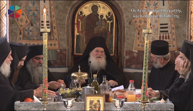 Οι όσιοι Πορφύριος και Σωφρόνιος. (Επιμέλεια Στέλιος Κούκος) Κάποτε πήγα για προσκύνημα στην Ιερά Μονή Τιμίου Προδρόμου, στο Έσσεξ της Αγγλίας, και συνάντησα τον Γέροντα Σωφρόνιο (Σαχάρωφ) . Κάποια στιγμή του είπα: – Γέροντα, ο Πνευματικός μου είναι ο π. Πορφύριος . – Ωωω…! Τι μου λες παιδί μου…! Θα πας και θα του βάλεις μία μετάνοια για σένα και μία για μένα και θα του πεις: «Από τον παππούλη, τον Σωφρόνιο, μαζί με πολλές, πολλές ευχές!». Όταν επέστρεψα στην Ελλάδα και μίλησα στον Άγιο σχετικά με τον π. Σωφρόνιο, μου είπε αυθόρμητα, σαν να μονολογούσε: – Μωρέ, εγώ κάθε ημέρα τον εβλέπω. Αφού κάθε ημέρα είμαστε μαζί… Μαρτυρία της Ειρήνης Β. όπως δημοσιεύεται στο βιβλίο ο “Όσιος Πορφύριος ο Προφήτης, Μαρτυρίες”, έκδοση Αγιοπαυλίτικο Ιερό Κελλί Αγίων Θεοδώρων, ...