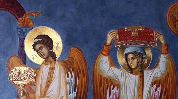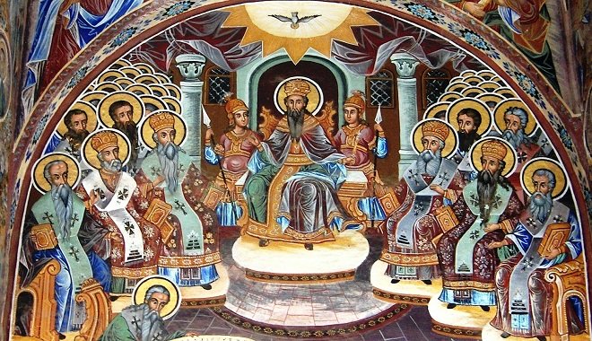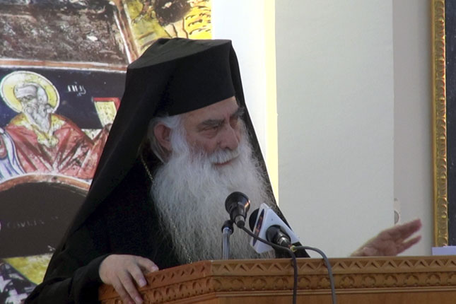 Ο άγιος Ιερώνυμος Σιμωνοπετρίτης (αριστέρα) και ο άγιος Νεκτάριος, Επίσκοπος Πενταπόλεως, ο εν Αιγίνη. (Επιμέλεια Στέλιος Κούκος) Είναι παραμονή της εορτής της Αγίας Τριάδος, όπου πανηγυρίζεια η Μονή του Αγίου . Ο άγιος της ασθενής στην κλίνην του δεν δύναται να χοροστατήσει στην αγρυπνία. Οι μοναχές τον ρωτούν αν θα σημάνουν καμπάνες. – Σημάνετε, λέγει, και ο παπάς έρχεται. Καθώς σήμαιναν οι καμπάνες ο π. Ιερώνυμος έμπαινε στο προαύλιο της Μονής. – Δεν σας είπα πως έρχεται ο παπάς, τους λέγει, και μάλιστα ηγούμενος Αγιορείτης; Ο Άγιος μετά την αγρυπνία ζητάει από τον π. Ιερώνυμο να περάσει από όλα τα κελλιά όλων των μοναχών για να τα ευλογήσει. Και εκείνος ο ευλογημένος, μπροστά στον Άγιο αρχιερέα αισθάνθηκε την αναξιότητά του και δεν θέλησε να υπακούσει και ...