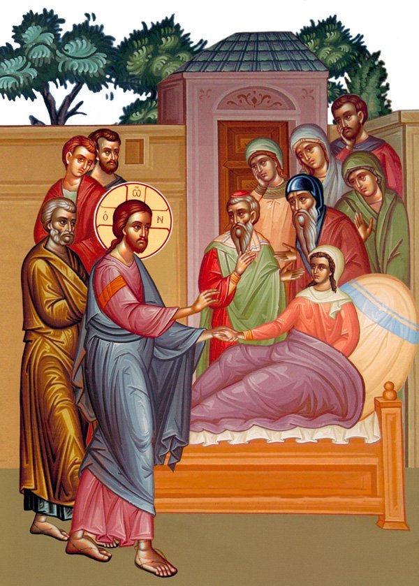 Το ιερό Ευαγγέλιο μας μιλάει για δύο μεγάλα θαύματα, τα οποία έκανε ο Χριστός στην Καπερναούμ, τη δεύτερη πατρίδα Του, αφού είχε γυρίσει από τη χώρα των Γαδαρηνών, που Τον έδιωξαν, οι κάτοικοί της. Τον περίμεναν όμως στην Καπερναούμ αμέτρητοι, κι ανάμεσά τους ξεπρόβαλε σε κάποια στιγμή ο άρχων της Συναγωγής Ιάειρος, που στα Ελληνικά σημαίνει Φώτιος, ο οποίος είχε μια μονάκριβη κόρη, που ήταν στα τελευταία της. Ο πόνος και η αγάπη μας οδηγούν στη ζωή. Ίσως είχε ακούσει για τον Χριστό, αλλά δεν Τον είχε δει ποτέ· δεν είχε πάει δηλαδή κοντά Του. Τώρα ο πόνος για τη θυγατέρα του και η αγάπη γι’ αυτήν τον έφεραν μπροστά στα πόδια του Χριστού. Και παρεκάλεσε τον Κύριο, αφού γονάτισε ενώπιόν ...