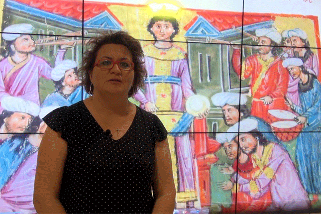 Η Δρ Φλώρα Καραγιάννη μιλάει για για την ψηφιακή έκθεση: «Ο θρύλος του Μεγάλου Αλεξάνδρου ως Βυζαντινή κληρονομιά. Η μαρτυρία ενός βυζαντινού χειρογράφου» που διοργανώνουν το Ελληνικό Ινστιτούτο Βυζαντινών και Μεταβυζαντινών Σπουδών Βενετίας και τα υπουργεία Εξωτερικών και Παιδείας στο χώρο του Αλεξάνδρειου Μέλαθρου στη Θεσσαλονίκη. Στην έκθεση προβάλλονται επιλεκτικά μικρογραφίες που σκιαγραφούν τα βασικά στοιχεία της ζωής του μεγάλου Μακεδόνα στρατηλάτη. Ο θεατής έχει τη δυνατότητα να δει με σύγχρονες ψηφιακές εφαρμογές τις μικρογραφίες, να περιηγηθεί και να θαυμάσει τις σελίδες του χειρογράφου και να λάβει πληροφορίες για τη διάδοση του θρύλου του Μεγάλου Αλεξάνδρου στον βυζαντινό κόσμο.
