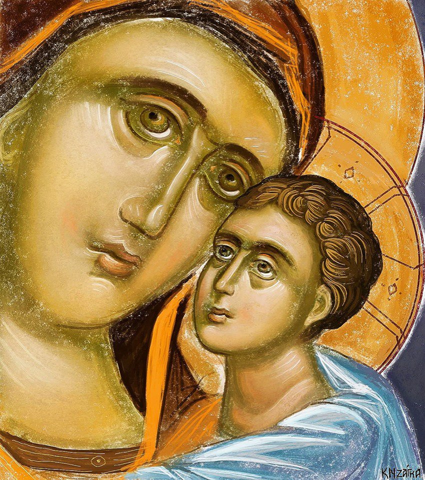 «Ποίοις οι ευτελείς χείλεσι, μακαρίσωμεν την Θεοτόκον; την τιμιωτέραν της κτίσεως, και αγιωτέραν υπάρχουσαν, Χερουβίμ και πάντων των Αγγέλων, τον θρόνον, του Βασιλέως τον ασάλευτον, τον οίκον, ενώ κατώκησεν ο Ύψιστος, την σωτηρίαν του κόσμου, του Θεού αγίασμα, την παρέχουσαν τοις πιστοίς, εν τη θεία μνήμη αυτής, πλουσίως το μέγα έλεος».Α΄Στιχηρό προσόμοιο εις το Κύριε Εκέκραξα,ακολουθίας μικρού Εσπερινού,της εορτής της Κοιμήσεως της Θεοτόκου.
