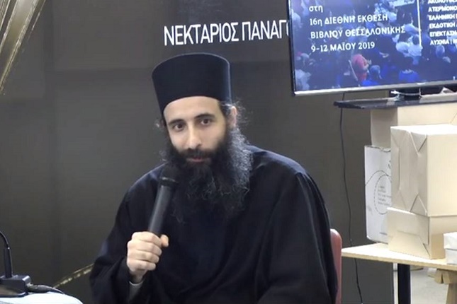 Ο Ιεροδιάκονος Θεοδόχος Βατοπαιδινός μιλάει για τα «Βατοπαιδινά λειτουργικά χειρόγραφα» στην παρουσίαση της νέας έκδοσης Ιεράς Μεγίστης Μονής Βατοπαιδίου «Διατάξεις της Θείας Λειτουργίας κατά τα Βατοπαιδινά χειρόγραφα του 14ου αιώνα» στην 16η Διεθνή Έκθεση Βιβλίου Θεσσαλονίκης την Παρασκευή 10 Μαΐου 2019.