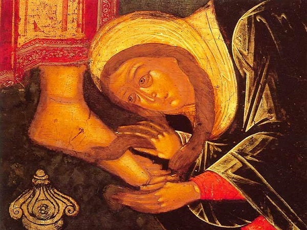 ‘Lord, the woman who had fallen into many sins…fulfilled the task of a myrrh-bearer and, lamenting, brought you sweet-smelling oil before your burial’. The Tropario (Hymn) of Kassiani dominates the service of matins for Great Wednesday. A sinful woman, a harlot in her body, realizes the state she’s in, undertakes the role of a myrrh-bearer and brings myrrh to Christ before His entombment. In a most moving gesture of love, she silently anoints the Lord’s feet, washes them with her tears and dries them with her hair, thus demonstrating the reality of her repentance, which the Lord accepts. A myrrh-bearing harlot of a woman, whose soul remained sensitive and aware of her sinfulness. Tears, myrrh, humility are all mixed with feelings ...