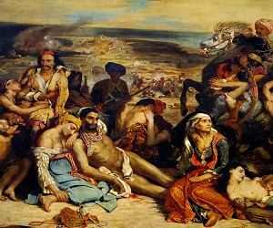 Επέτειος Σφαγής της Χίου, 30 Μαρτίου 1822 Ευγένιος Ντελακρουά, (1798-1863). «Η Σφαγή της Χίου (Scène des massacres de Scio), ελαιογραφία, 4.19 μ. χ 3,54 μ. 1824. Παρίσι, Μουσείο Λούβρου. Βίκτωρ Ουγκώ Το Ελληνόπουλο (Μετάφραση Κωστής Παλαμάς) Τούρκοι διαβήκαν. Χαλασμός, θάνατος πέρα ως πέρα. Η Χίο, τ’ ολόμορφο νησί, μαύρη απομένει ξέρα, με τα κρασιά, με τα δεντρά τ’ αρχοντονήσι, που βουνά και σπίτια και λαγκάδια και στο χορό τις λυγερές καμιά φορά τα βράδια καθρέφτιζε μέσ’ τα νερά. Ερμιά παντού. Μα κοίταξε κι απάνου εκεί στο βράχο, στου κάστρου τα χαλάσματα κάποιο παιδί μονάχο κάθεται, σκύβει θλιβερά το κεφαλάκι, στήριγμα και σκέπη του απομένει μόνο μια ν’ άσπρη αγράμπελη σαν αυτό ξεχασμένη μέσ’ την αφάνταστη φθορά. -Φτωχό παιδί, που κάθεσαι ξυπόλυτο στις ράχες για να μην κλαις λυπητερά, τ’ ήθελες τάχα να ̓χες για να τα ιδώ τα θαλασσά ματάκια ...