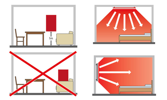 Τα πάνελ Υπέρυθρης Θέρµανσης µπορούν να εγκατασταθούν στον τοίχο και στην οροφή ή να σταθούν στο δάπεδο µε προαιρετική βάση δαπέδου ώστε να µπορείτε να τα µετακινείτε. Θα πρέπει όμως να «κοιτάζουν» προς τους τοίχους και όχι προς τα παράθυρα (γράφημα: www.solarheat.gr) Όπως κάθε ακτινοβολία, έτσι και η υπέρυθρη απαιτεί μέτρα ασφαλείας, για μείωση οποιασδήποτε διακινδύνευσης. Η θέρμανση και η βιοδιέγερση, με ήπια υπέρυθρη ακτινοβολία, είναι επωφελής, εάν τηρούνται κάποια απλά μέτρα ασφαλείας. Τύποι θέρμανσης. Η θέρμανση, δηλαδή η μετάδοση της θερμότητας, μπορεί να γίνει, είτε έμμεσα με την κυκλοφορία ενός ρευστού, ικανού να μεταφέρει την θερμική ενέργεια, από ένα θερμό σώμα προς ένα ψυχρό χώρο, είτε άμεσα με την επαφή ενός θερμού σώματος με ένα ψυχρό σώμα ή ακόμη και με ...