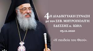 Το Σάββατο 5 Δεκεμβρίου 2020, πραγματοποιήθηκε σε ζωντανή διαδικτυακή μετάδοση μέσω των εφαρμογών Zoom και YouTube, η 4η Διαδικτυακή Σύναξη με τον Σεβασμιώτατο Μητροπολίτη Εδέσσης,...