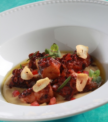 ΥΛΙΚΑ Για το πιάτο 50 γρ. ελαιόλαδο 500 γρ. χταπόδι μπρεζέ 200 γρ. κρεμμύδι καραμελωμένο 100 γρ. ντομάτα ψητή, σε...