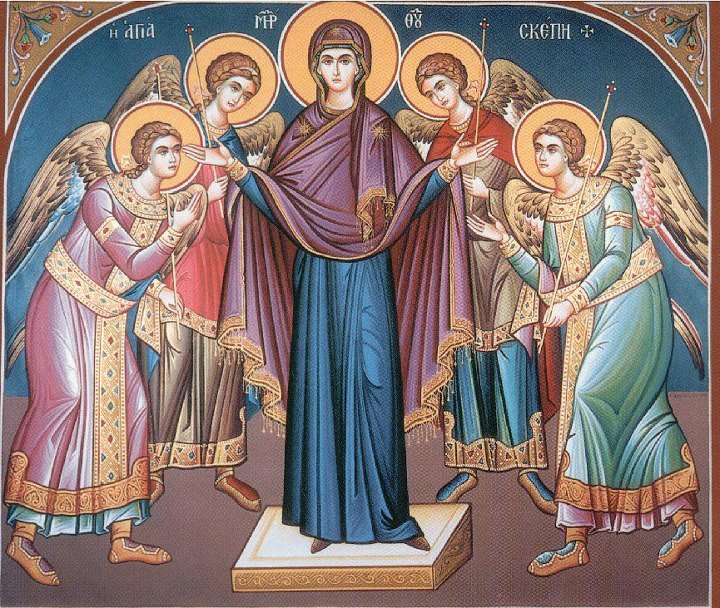 Εορτάζει στις 28 Οκτωβρίου εκάστου έτους. Σκέπη σου, Αγνή, σκέπεις και περιθάλπεις Τους πίστει αφορώντας προς σε, Παρθένε. Μητρὸς Θεοίο...